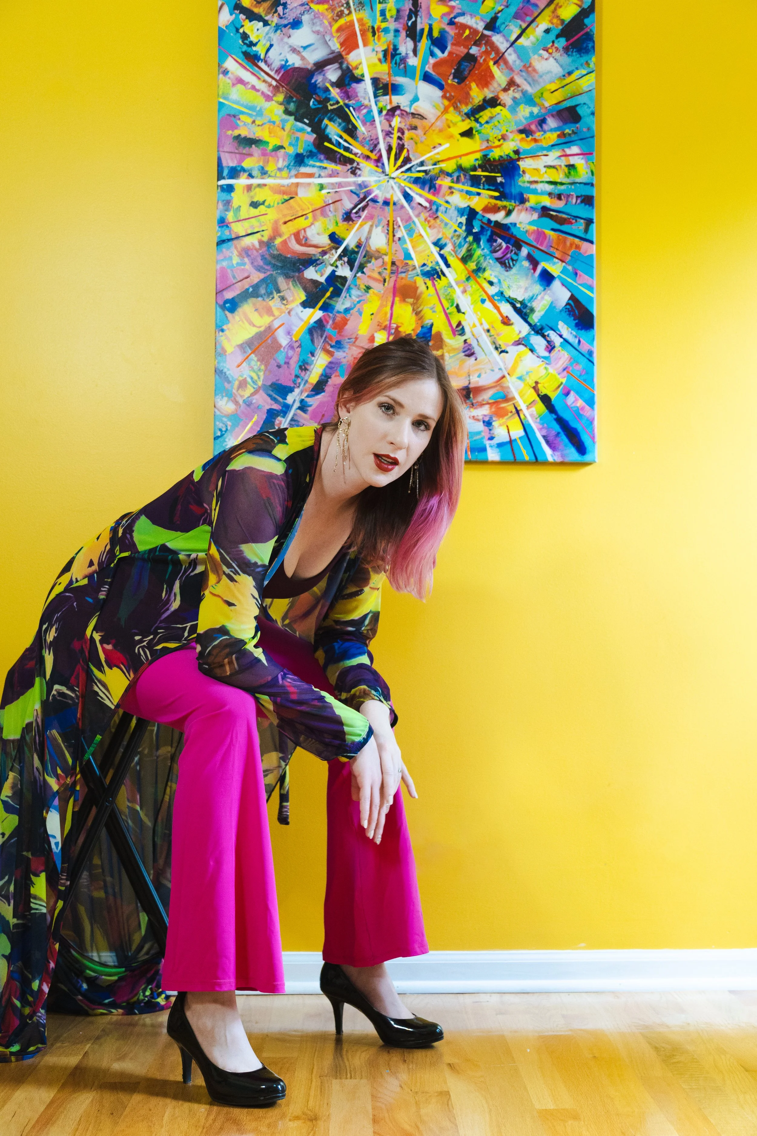 Inspired by Divisionism and Pointillism, Emma’s Abstracture style combines bold colorful strokes with geometric placement while exploring the themes of